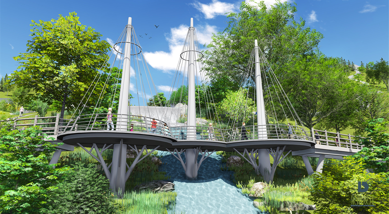 項目充分利用區域良好地形環境,打造生態、天然泳池效果,結合現有山石設計休閑平添,泳池臨山石而建,利用山石堆砌泳池池壁,為游客提供一處休閑、玩水好去處。
